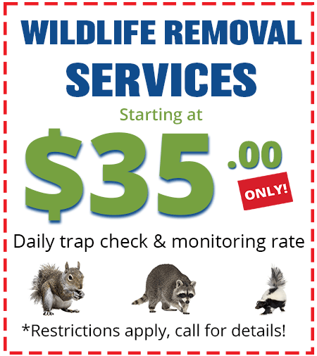 The professionals at TAYLOR'D Pest Services are your trusted wildlife removal experts! We use humane wildlife control and capture methods to safely remove unwanted nuisance animals from your property, such as squirrels, skunks, opossums and raccoon.